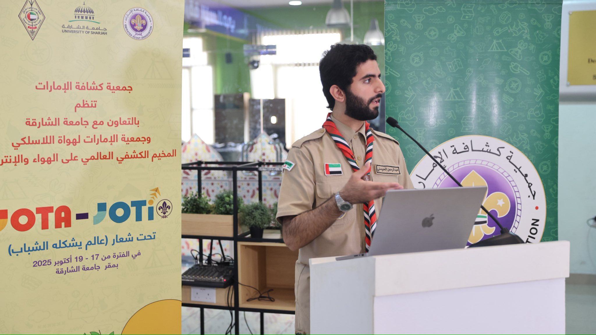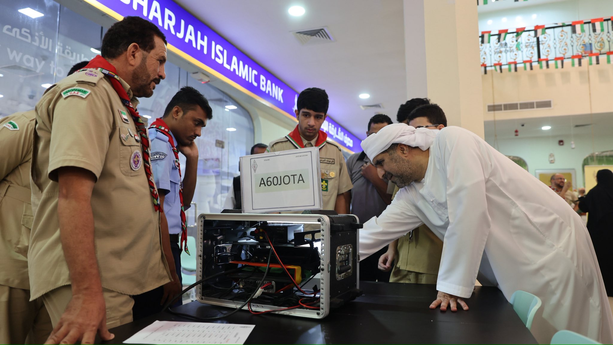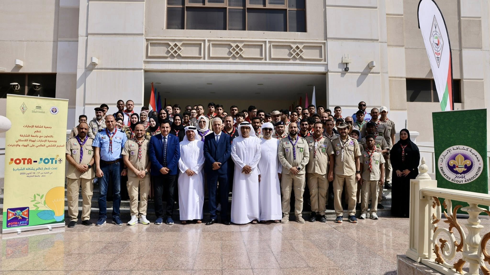 The activities of the World Scout Jamboree on the Air and Internet (JOTA-JOTI) under the slogan “A world shaped by youth”, with the participation of 100 Rovers, Scouts, and Guides representing the Scout Commissions in the country, in addition to the participation of Rovers and Scouts from the University of Sharjah and Al Qasimia University, organized by the Emirates Scout Association in cooperation with the University of Sharjah and the Emirates Amateur Radio Society.